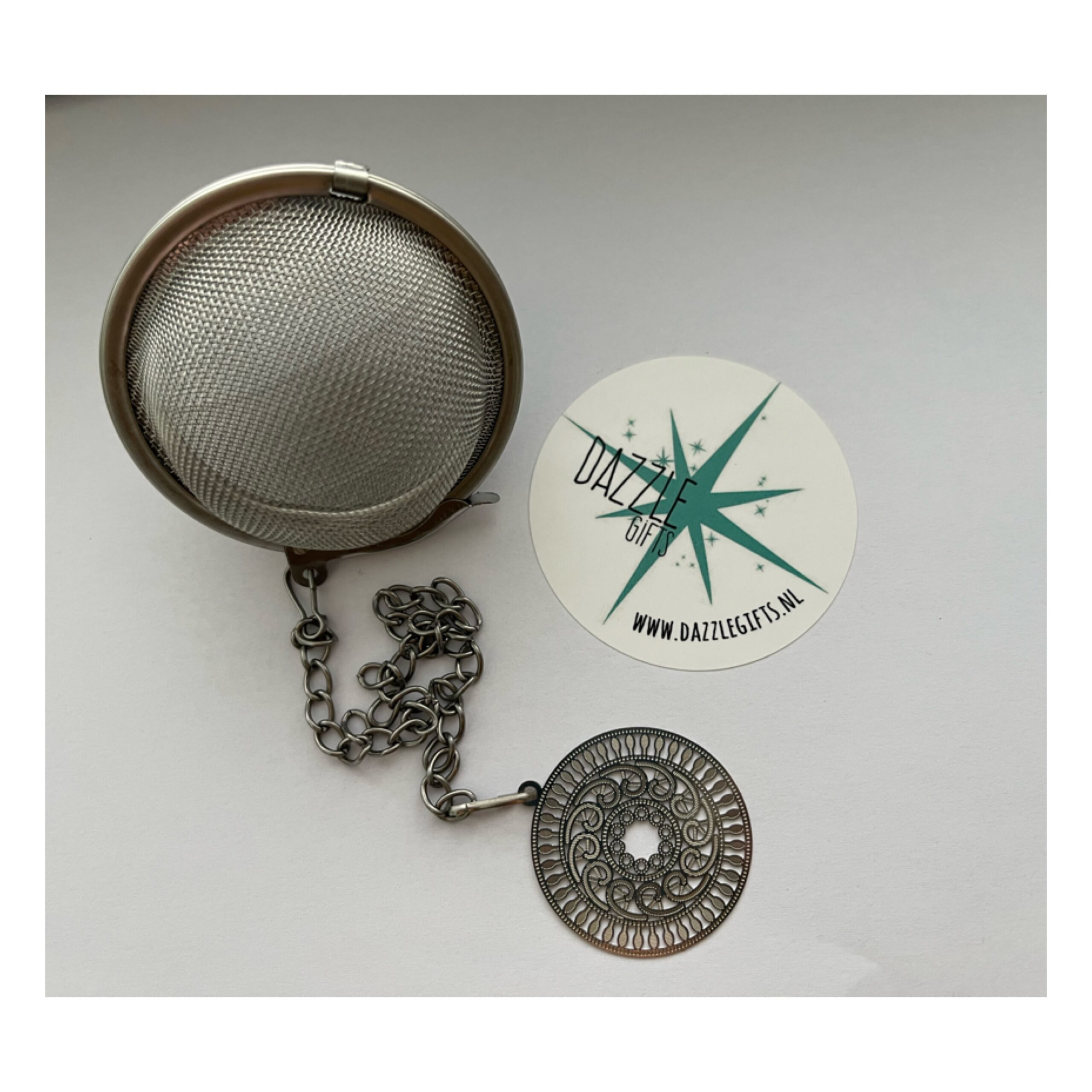 Dit leuke theezeefje heeft een extra lang stukje ketting zodat de bedel aan de buitenzijde van je theeglas blijft hangen.